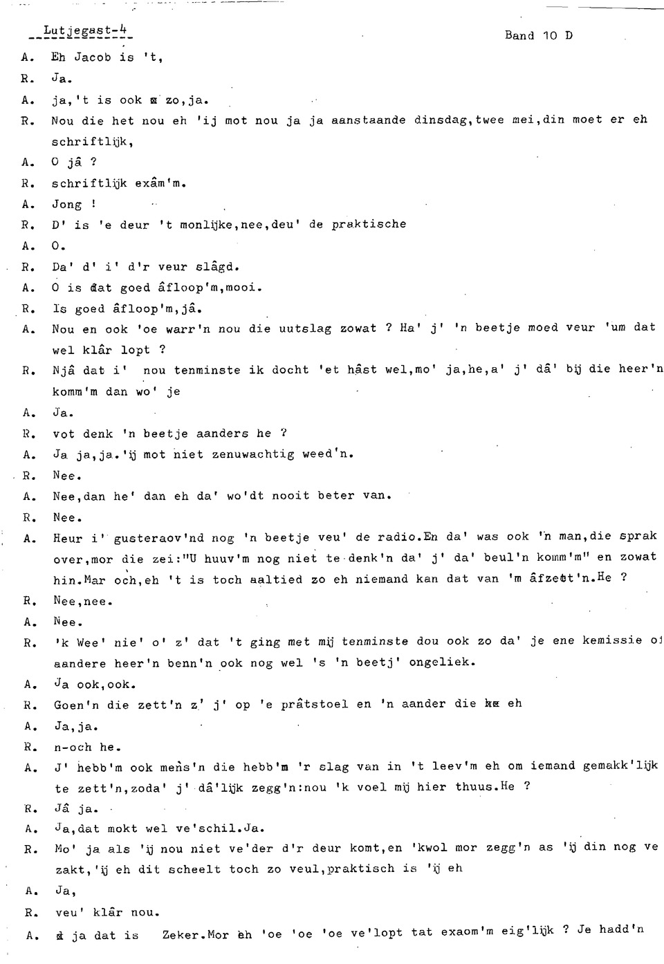 onderwerp: Over het slachten van dieren; Over een filantroop; Iemand die raad krijgt voor het niet kunnen slapen; over het juiste tijdstip van (stunteren?); Controle-vereniging; (mutaties?) onder de leden; over iemand die moet (?); in ander huis; examen doen.; Over tbc onderzoek; Muziek in een dorp