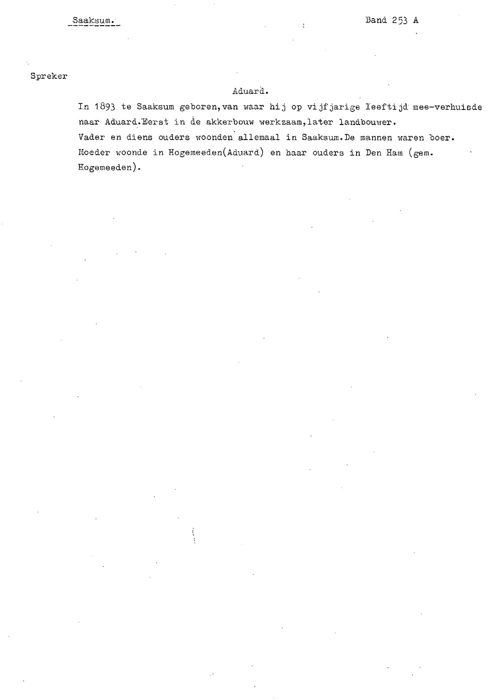 man, 1911, Vroeger landarbeider.; Werkzaam bij gemeente Aduard.