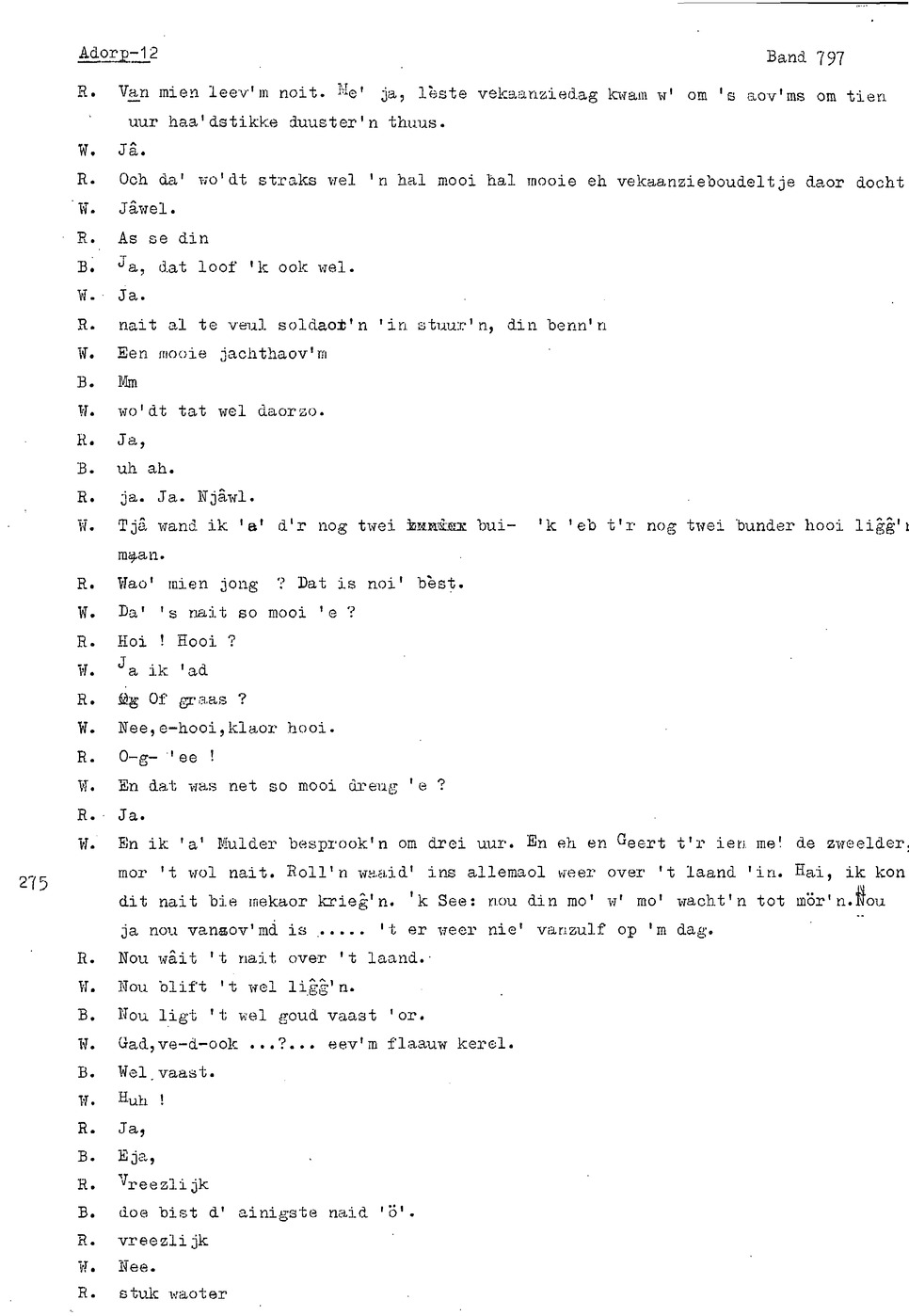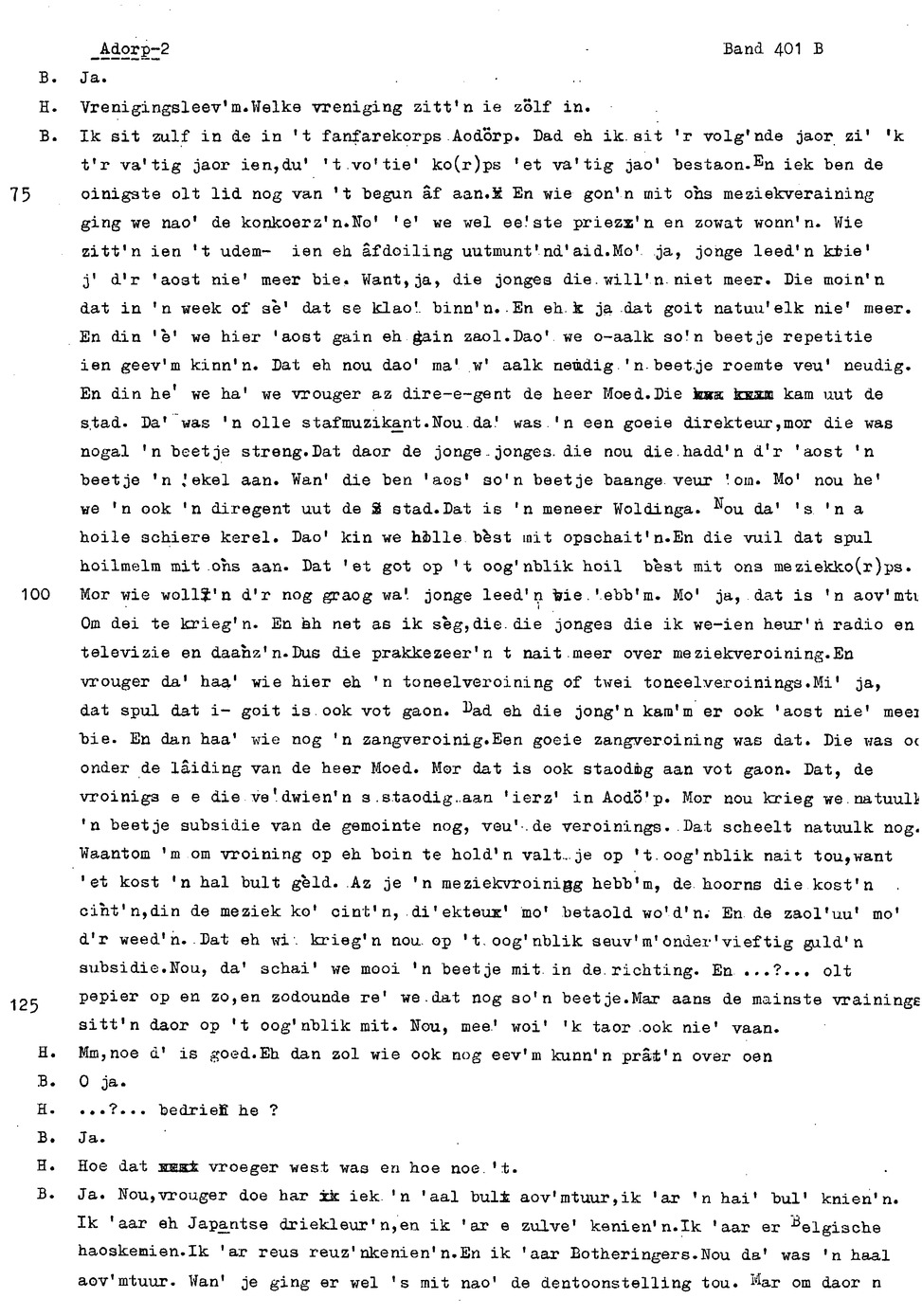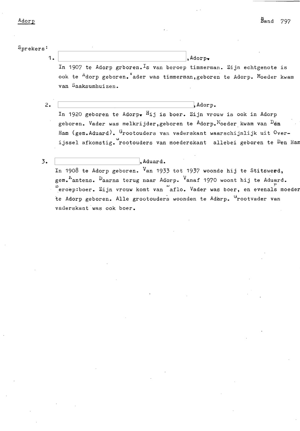 onderwerp: vrije tijdsbesteding in Adorp; vaak: vroeger was het beter m.b.t. landbouw etc.