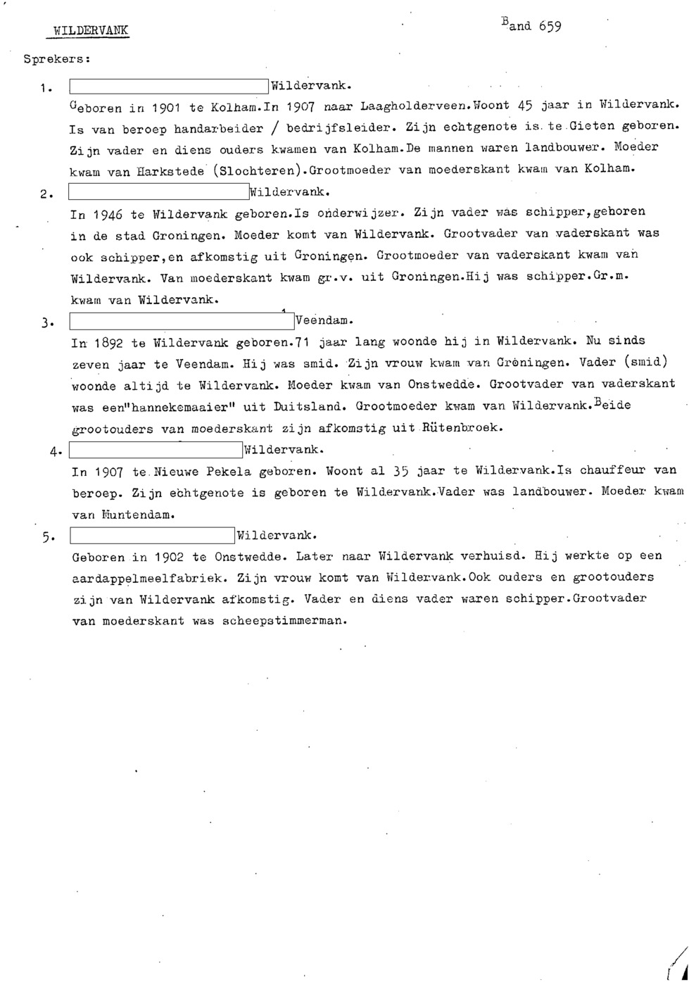 onderwerp: Over Wildervank: veel inwoners trekken naar Veendam, alleen oude mensen schijnen te blijven of te komen.