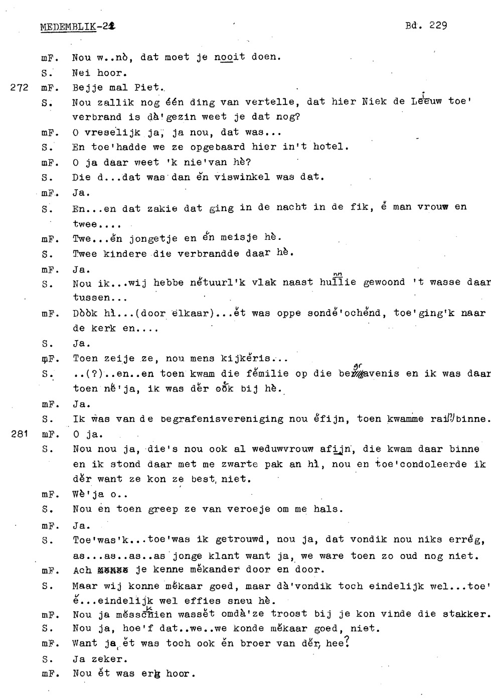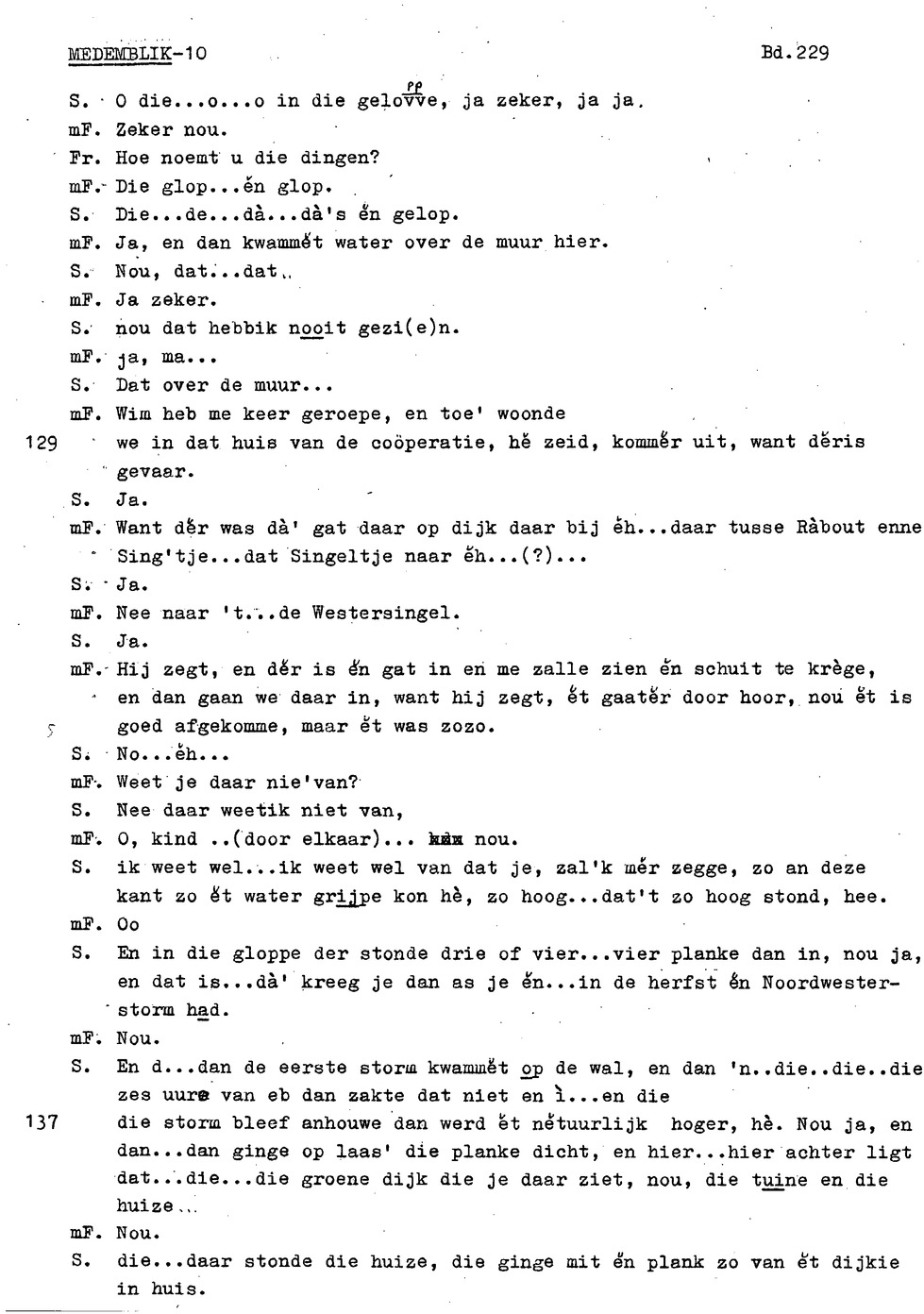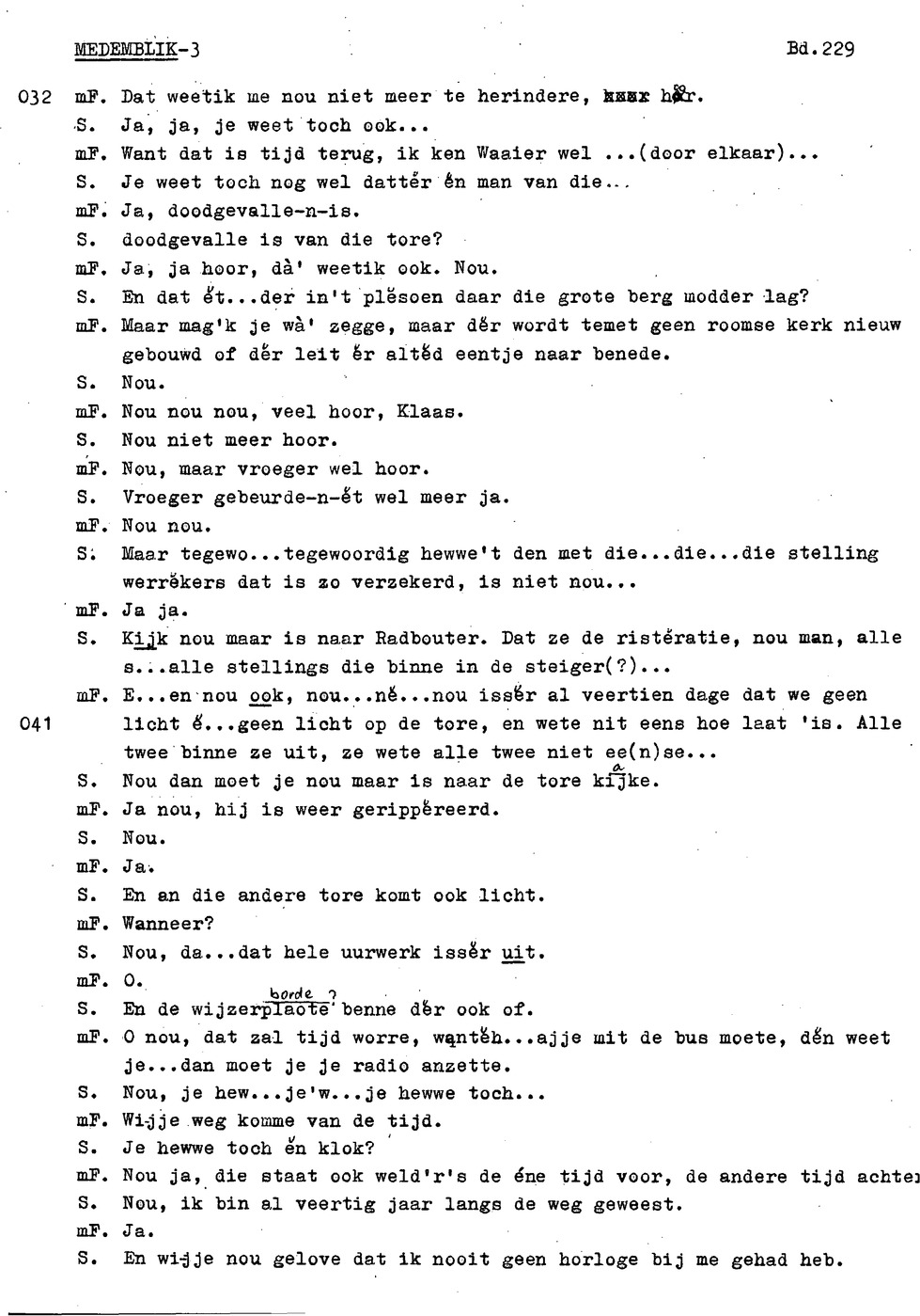 onderwerp: de schoonmaak , vroeger, oude mensen, vervoer, kerkbrand, een ongeluk dat hem overkomen is, ‘in der schikke minnen'. veranderingen in Medemblik. De visserij. Overstromingsgevaar, hoog water. De inpoldering van de zuiderzee. Radbout , de restauratie van dit kasteel. een grote brand in medemblik. armoe vroeger. de verkering. de brand in een viswinkel