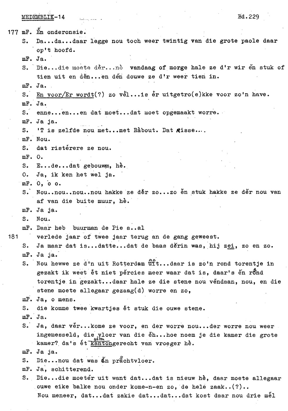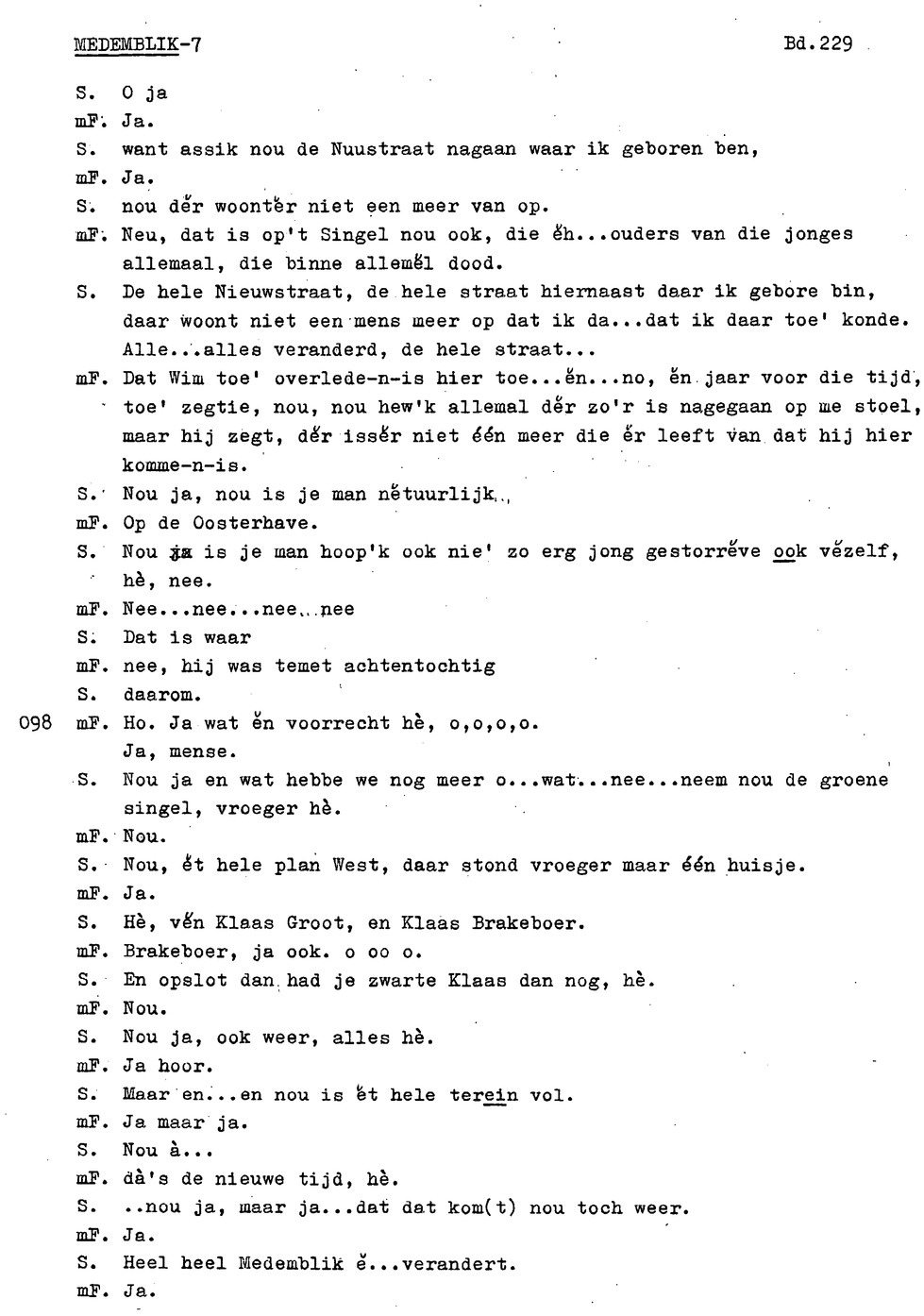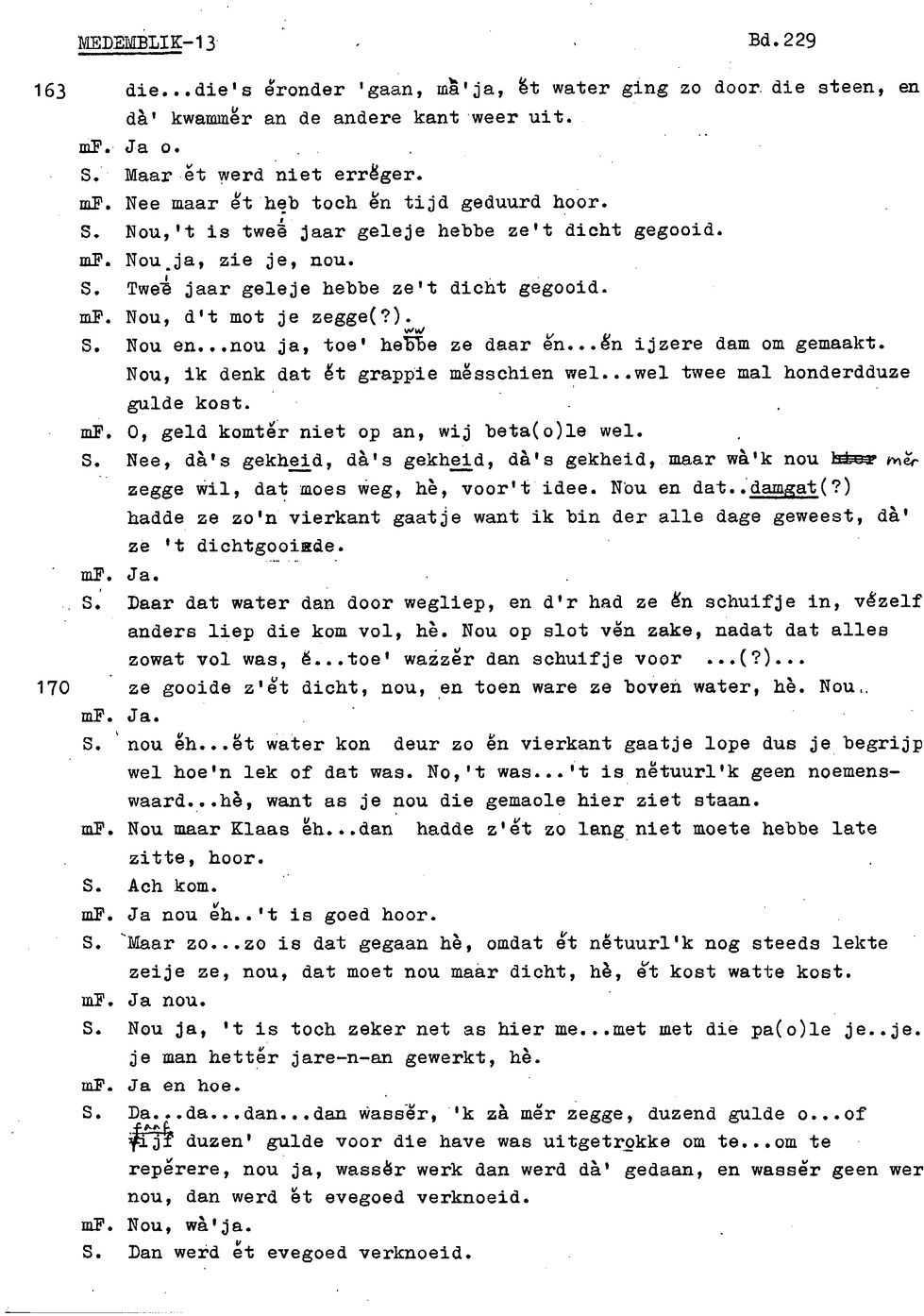onderwerp: de schoonmaak , vroeger, oude mensen, vervoer, kerkbrand, een ongeluk dat hem overkomen is, ‘in der schikke minnen'. veranderingen in Medemblik. De visserij. Overstromingsgevaar, hoog water. De inpoldering van de zuiderzee. Radbout , de restauratie van dit kasteel. een grote brand in medemblik. armoe vroeger. de verkering. de brand in een viswinkel