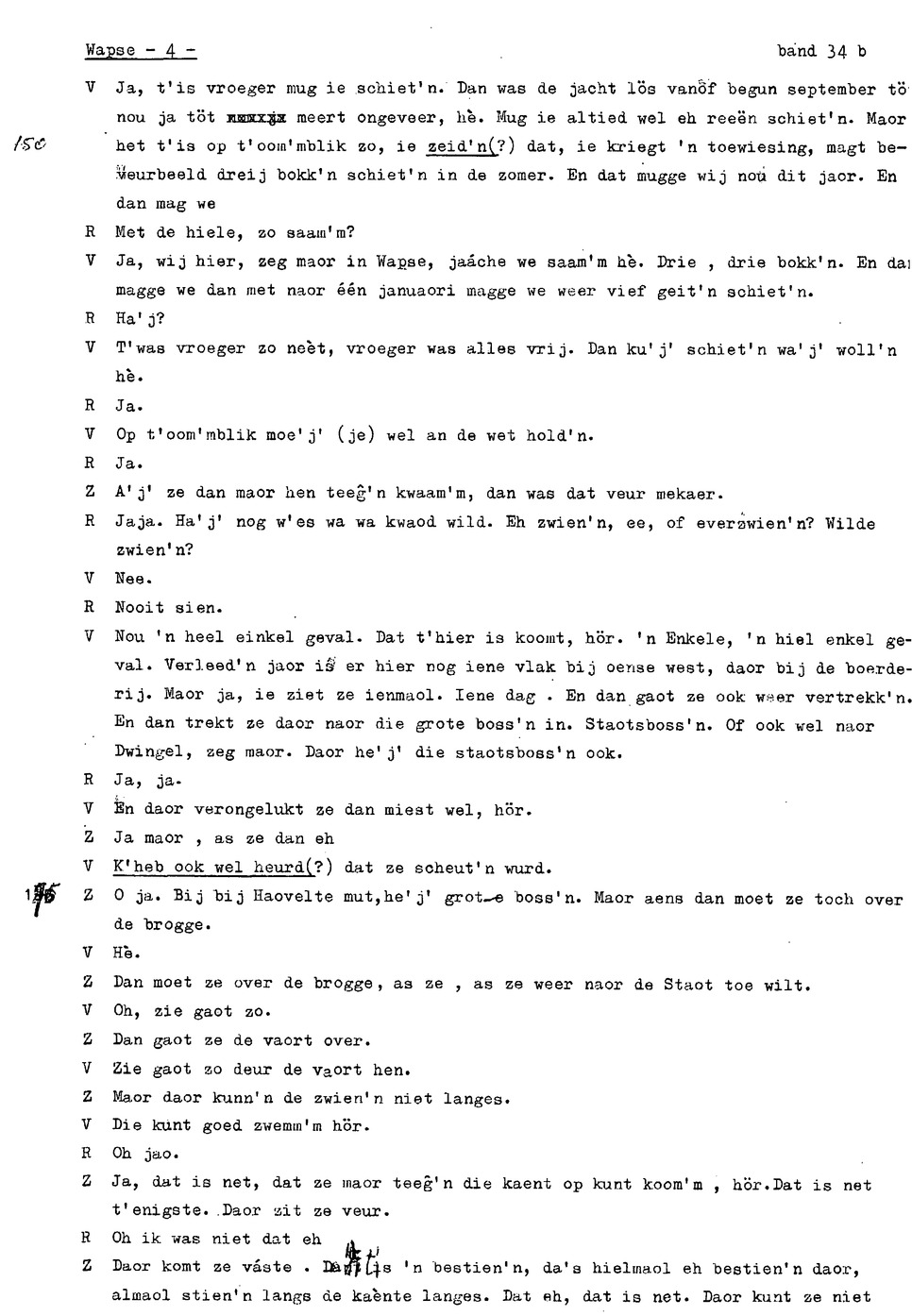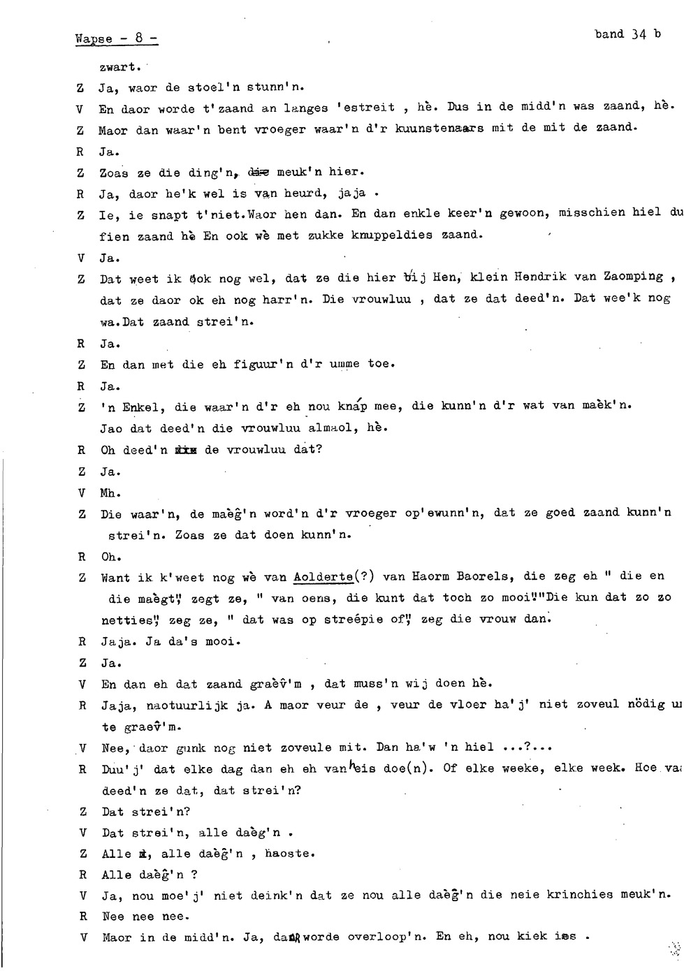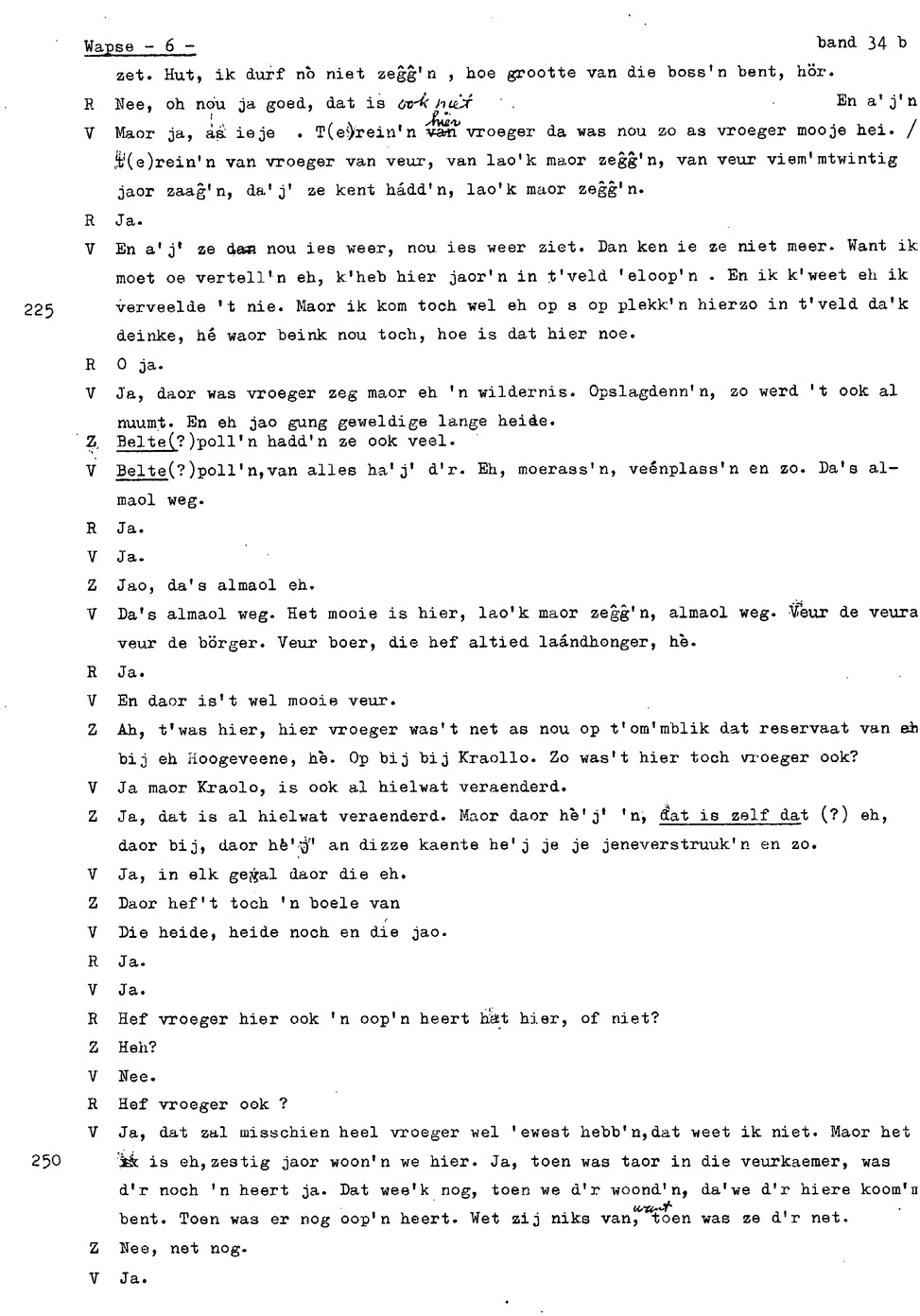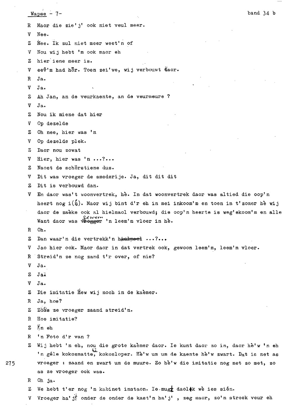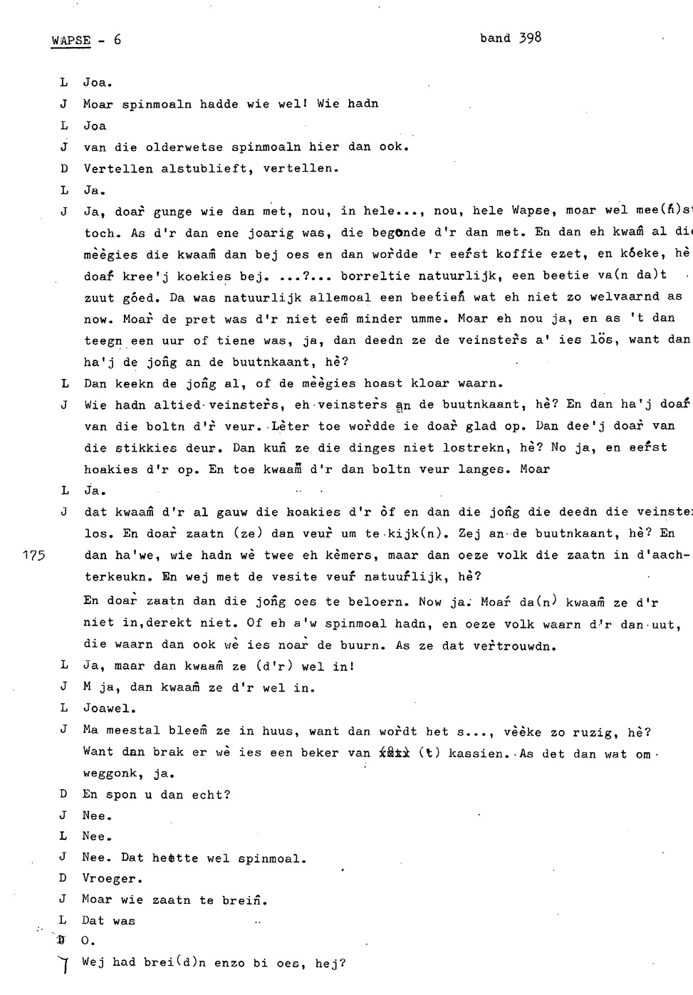 onderwerp: over lang praten; over sterfgevallen; over vader informant 2 ; over vroeger: met minder tevreden; kleding vroeger; eten vroeger; kermis; spinmaal van jongens en meisjes; dronken herders van schaapskudde; huisslacht; veranderingen tijdens 44 jaar huwelijk; meer broodbeleg dan vroeger; ; ;