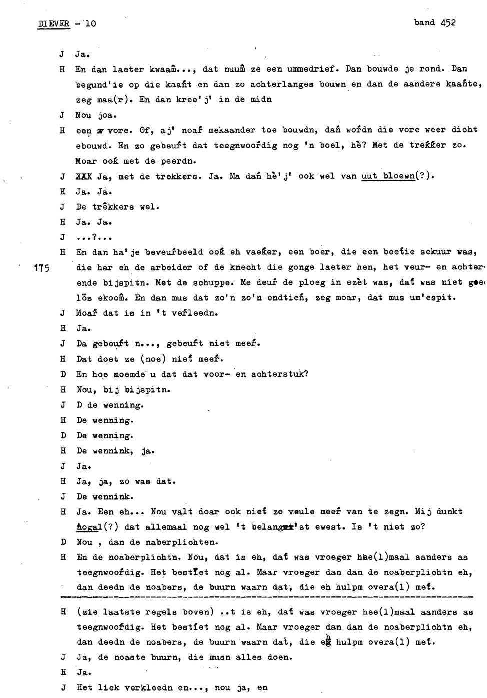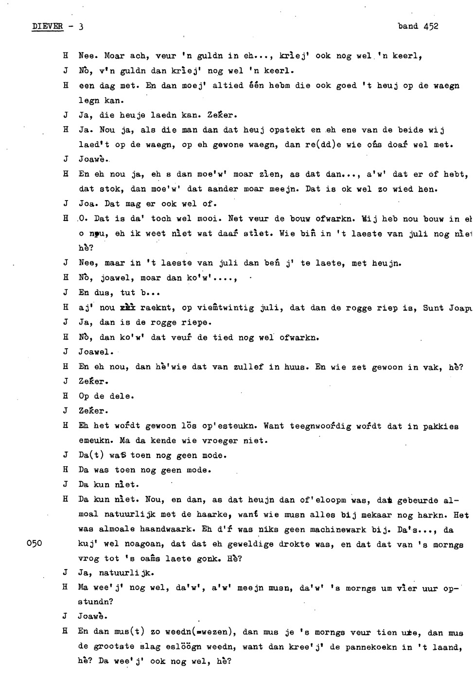 onderwerp: hooien; rogge; spurrie (sparre) en knollen verbouwen; ploegen; burenplichten en -gebruiken bij overlijden; gebruiken bij geboorte; slachten; burenplichten en gebruik bij huwelijken; verkering; kado's van buren bij trouwen; verhuzen kost beddestro