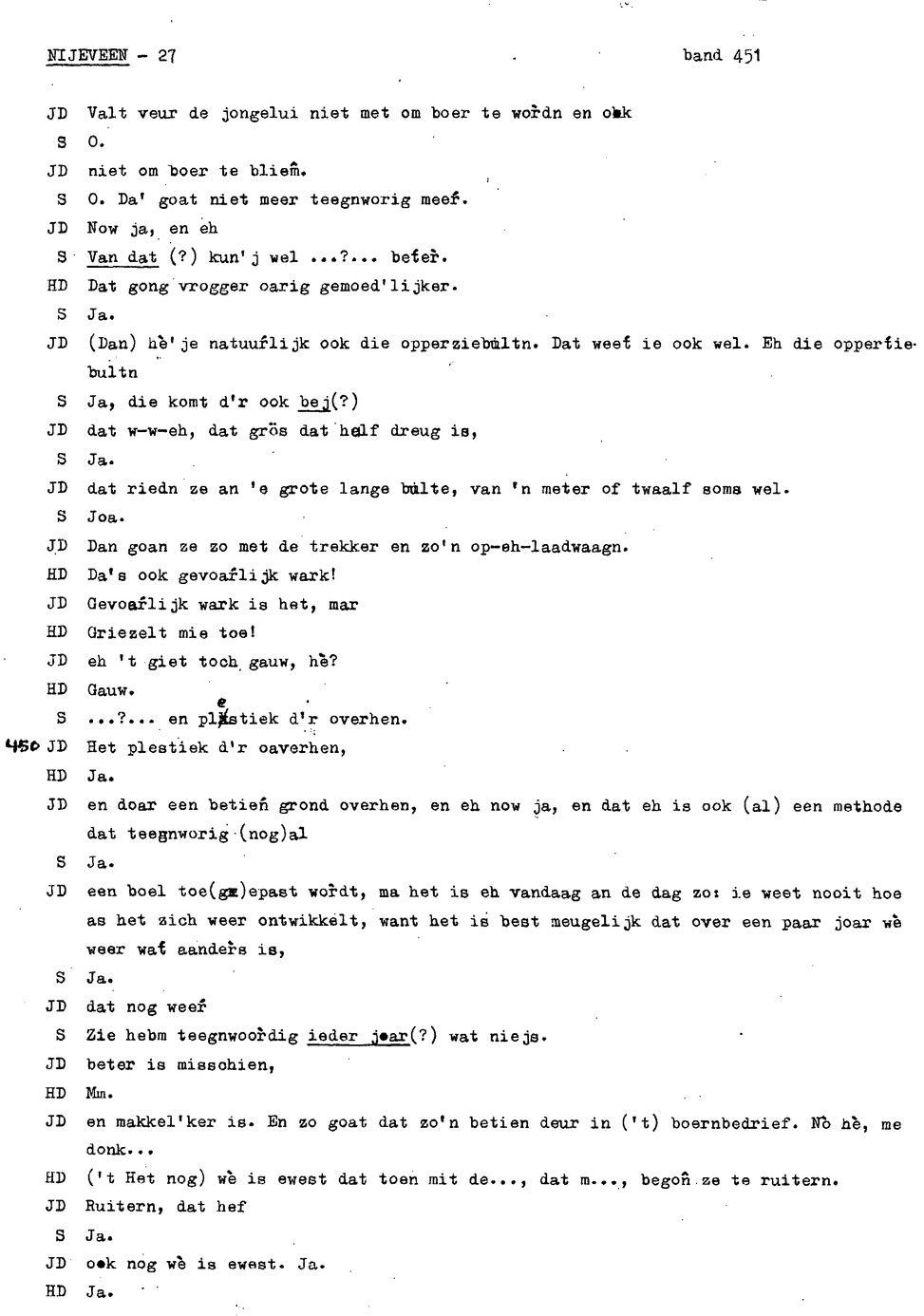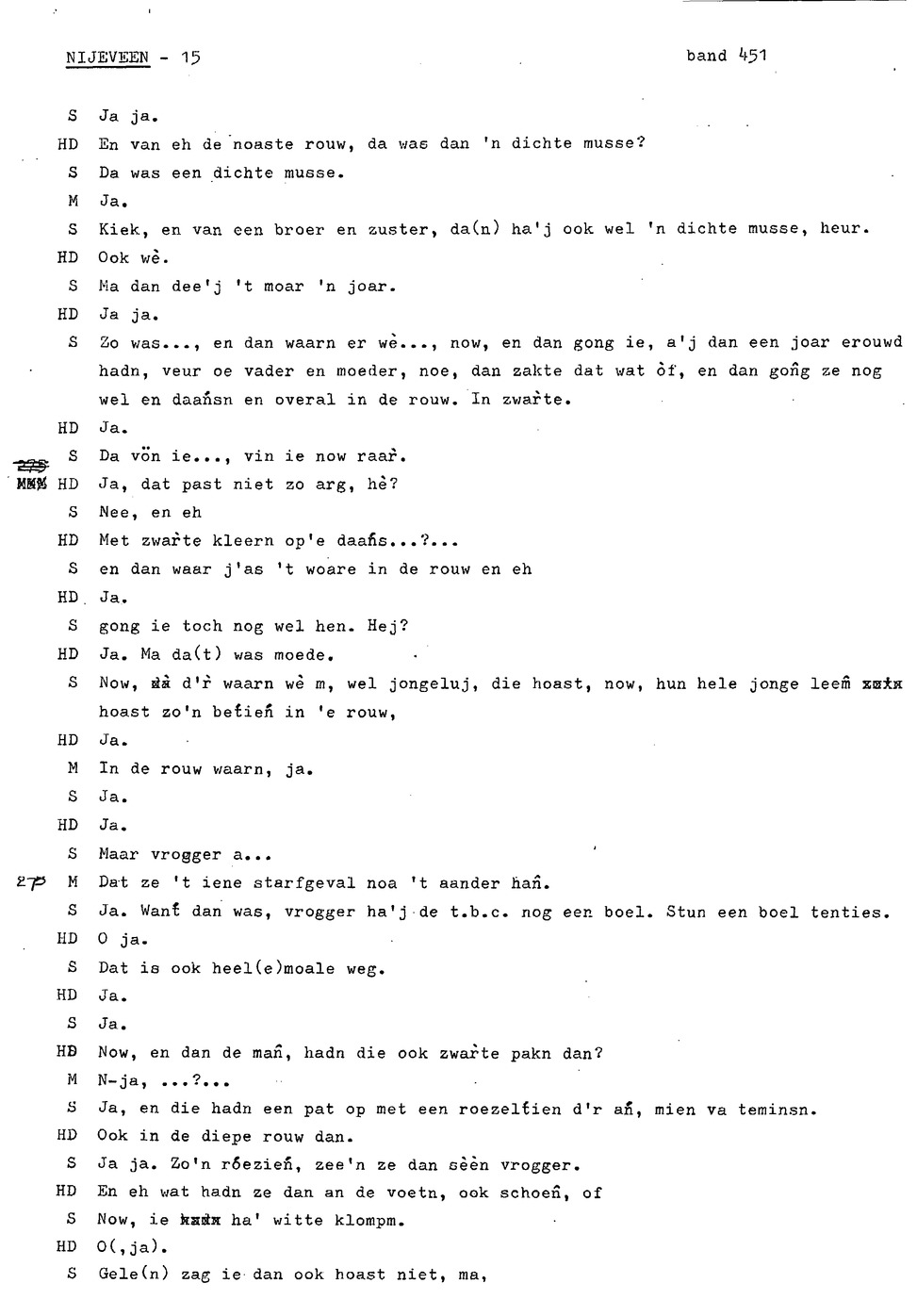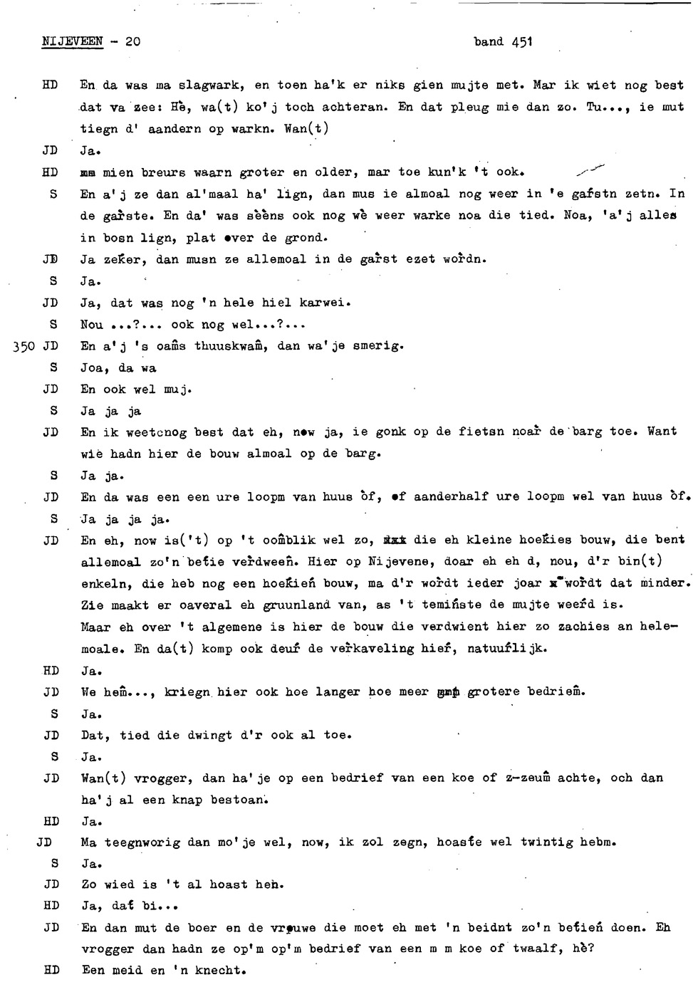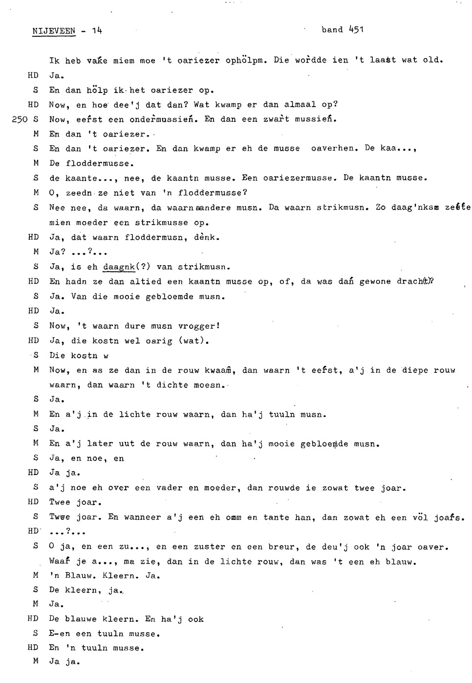onderwerp: de jeugd van informant 1 en 2; klederdracht; rouwkleding; dialect; zaad dorsen en schoonmaken; rogge maaien; veranderingen in het boerenbedrijf; hooien;