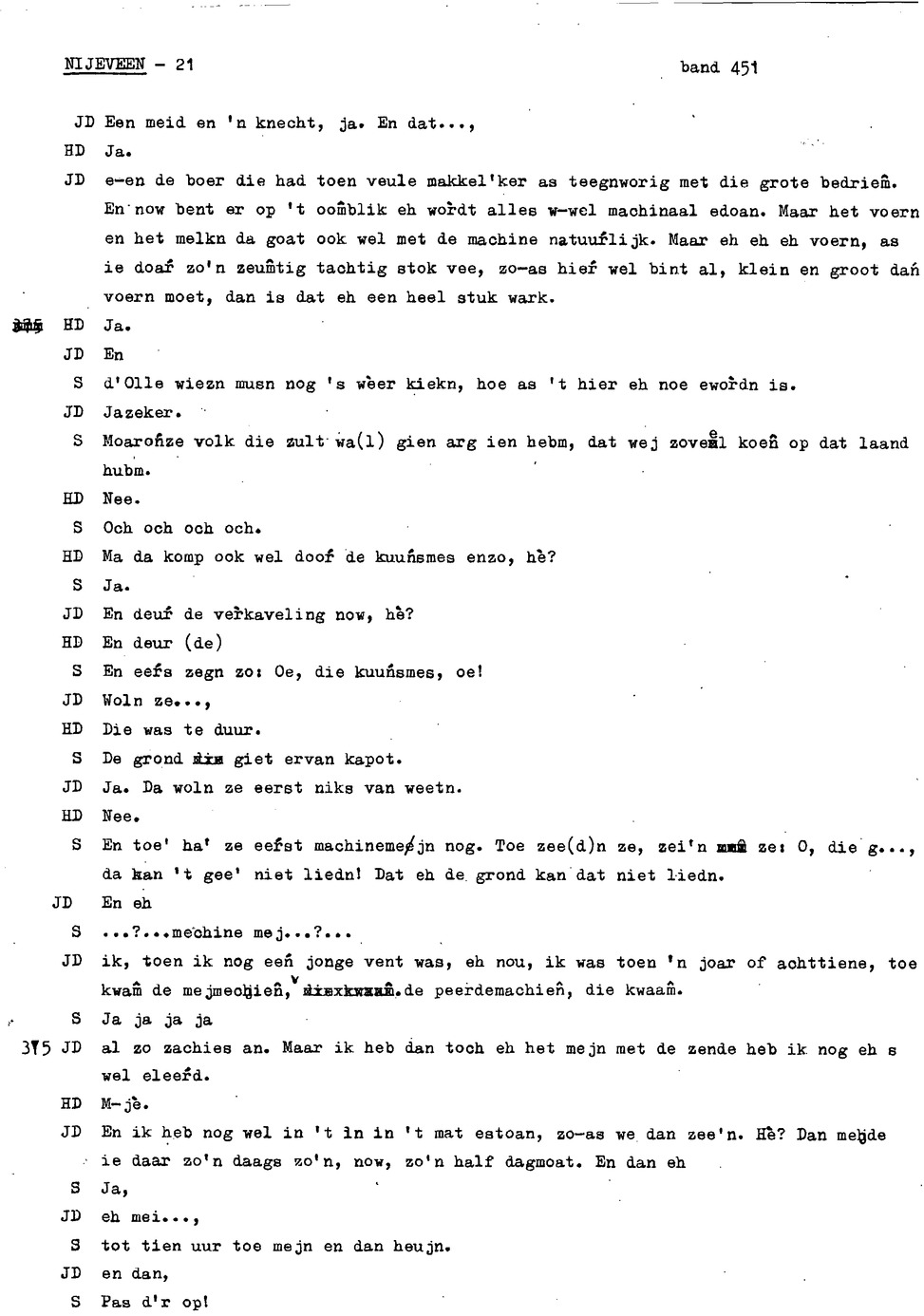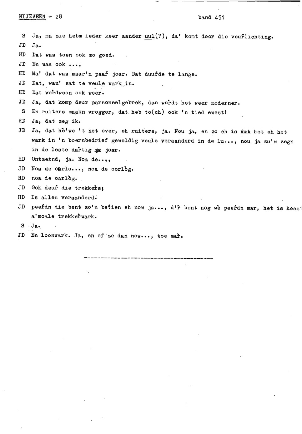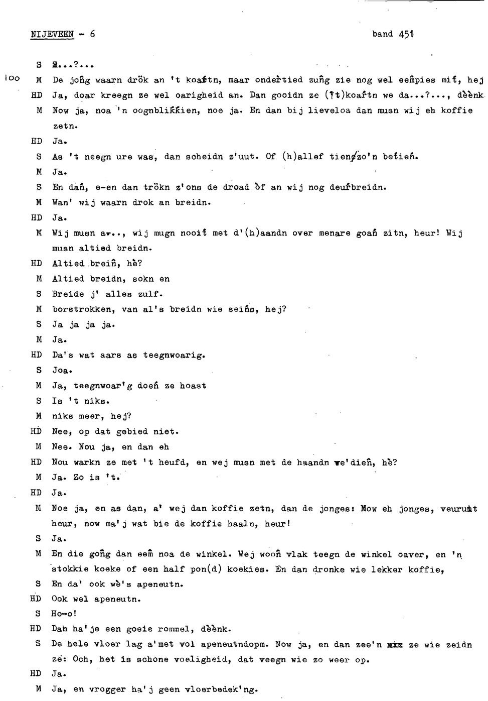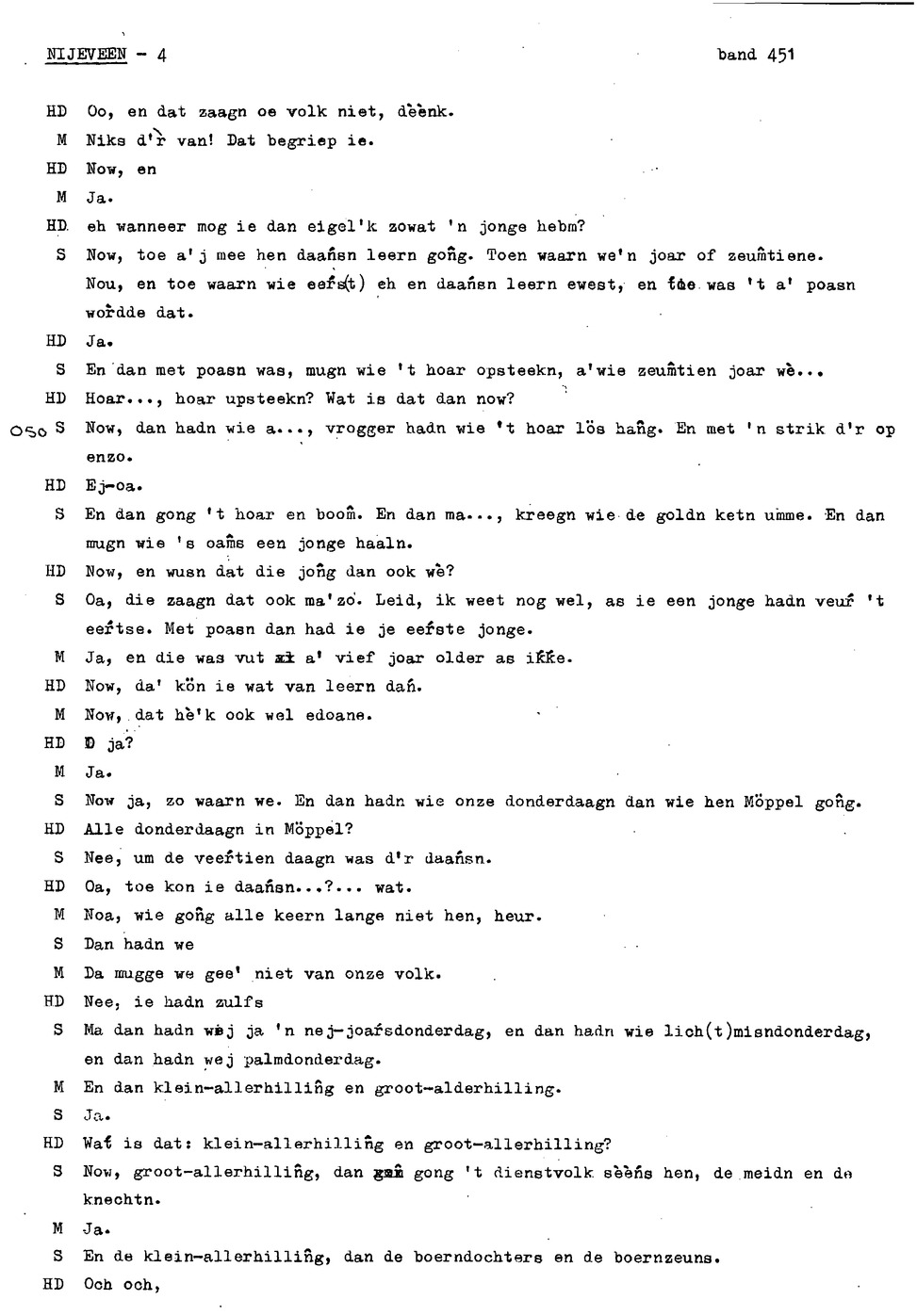 onderwerp: de jeugd van informant 1 en 2; klederdracht; rouwkleding; dialect; zaad dorsen en schoonmaken; rogge maaien; veranderingen in het boerenbedrijf; hooien;