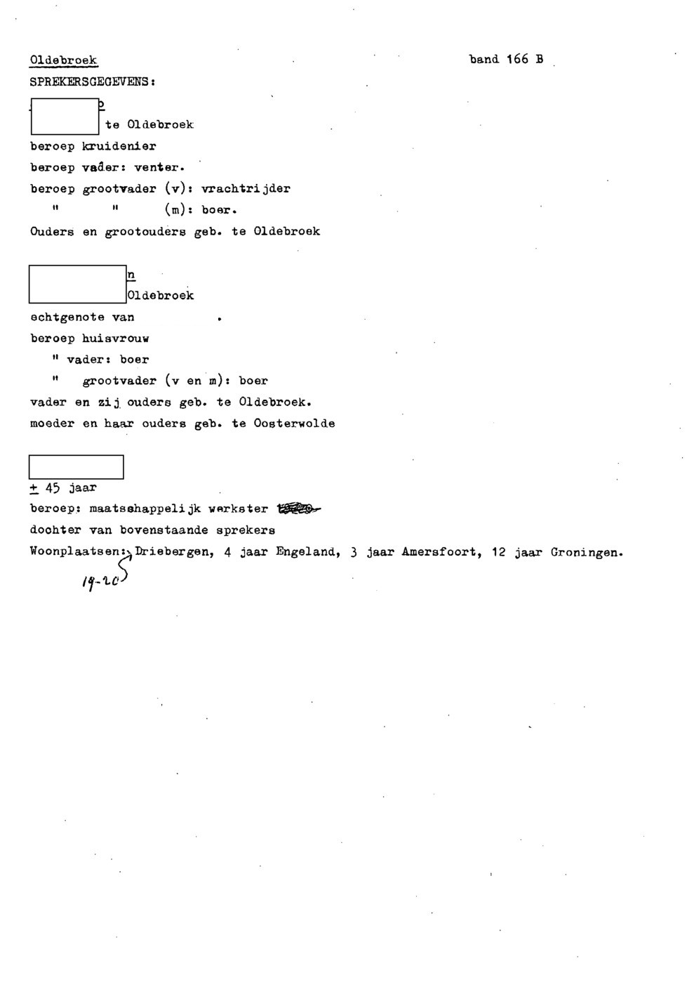 informanten: man, 1889, kruidenier vrouw, 1889, huisvrouw vrouw, 45, maatschappelijk werkster