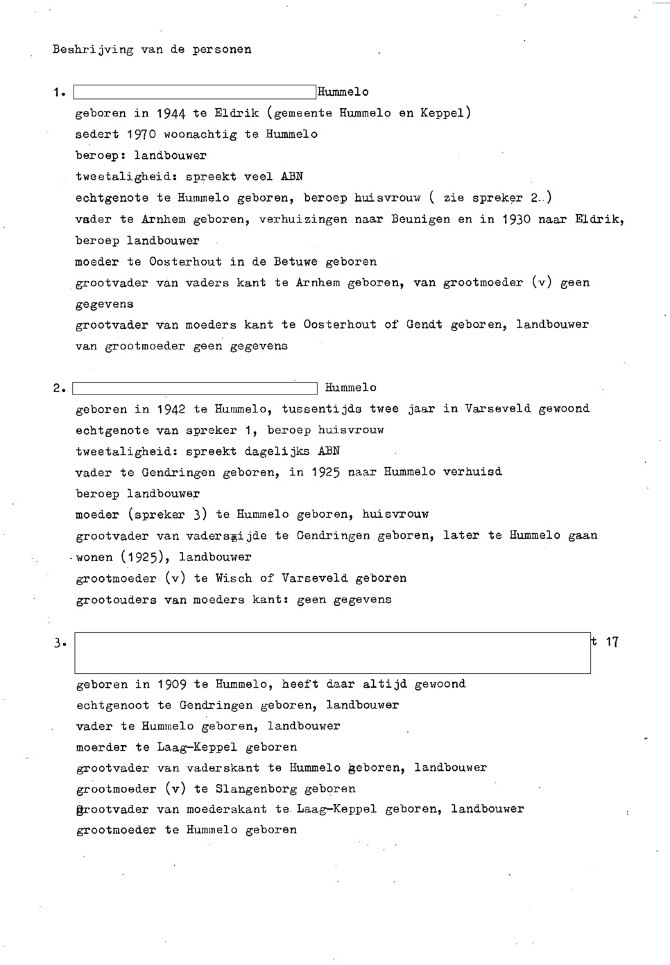 informanten: man, 1944, Landbouwer vrouw, 1942, Huisvrouw geslacht niet vermeld, leeftijd onbekend, beroep onbekend vrouw, 1909, beroep onbekend
