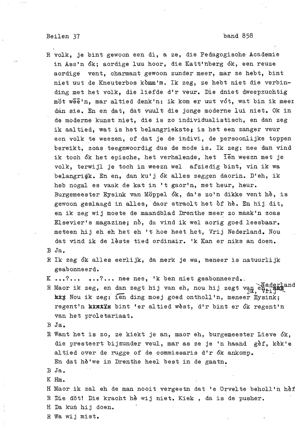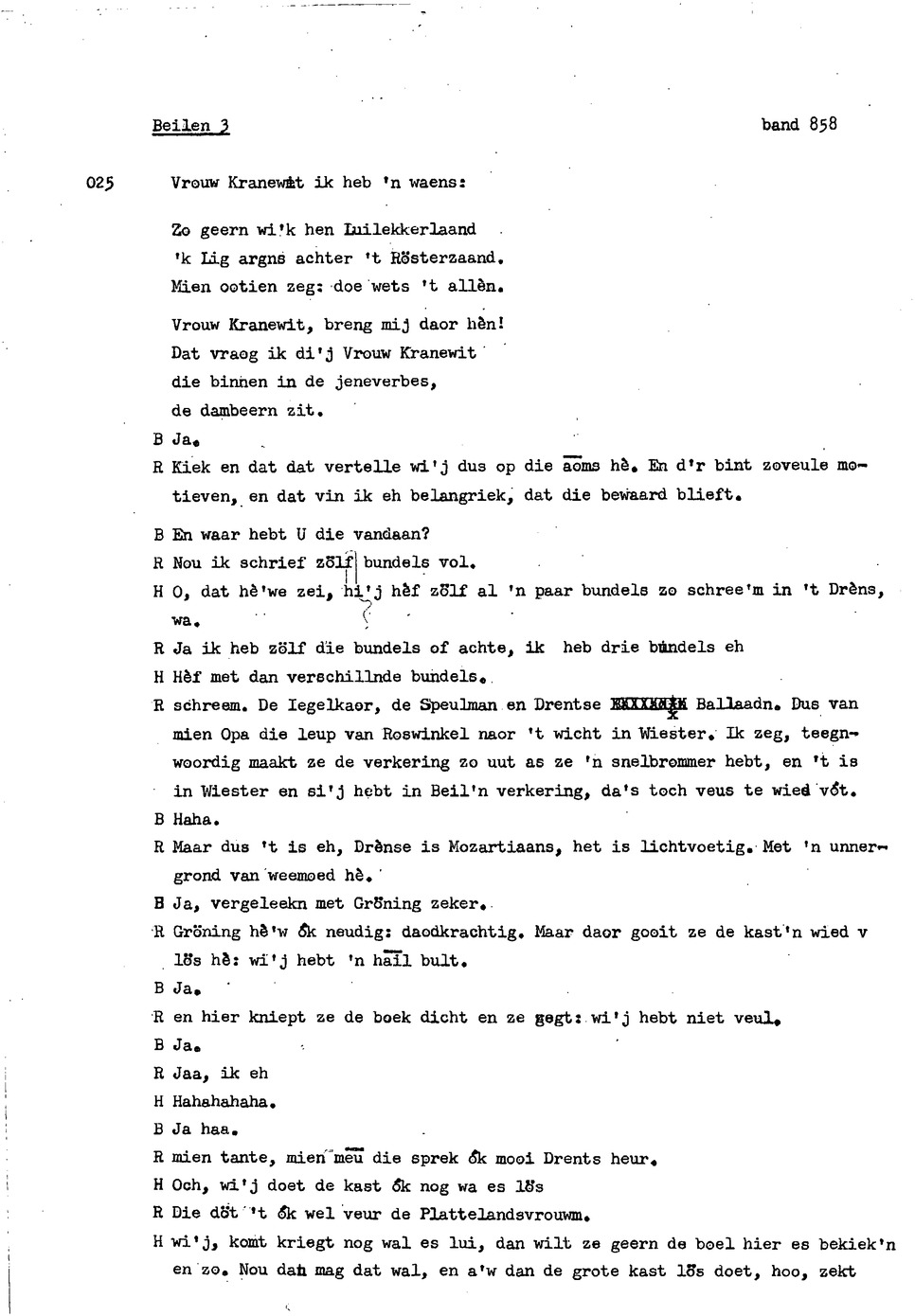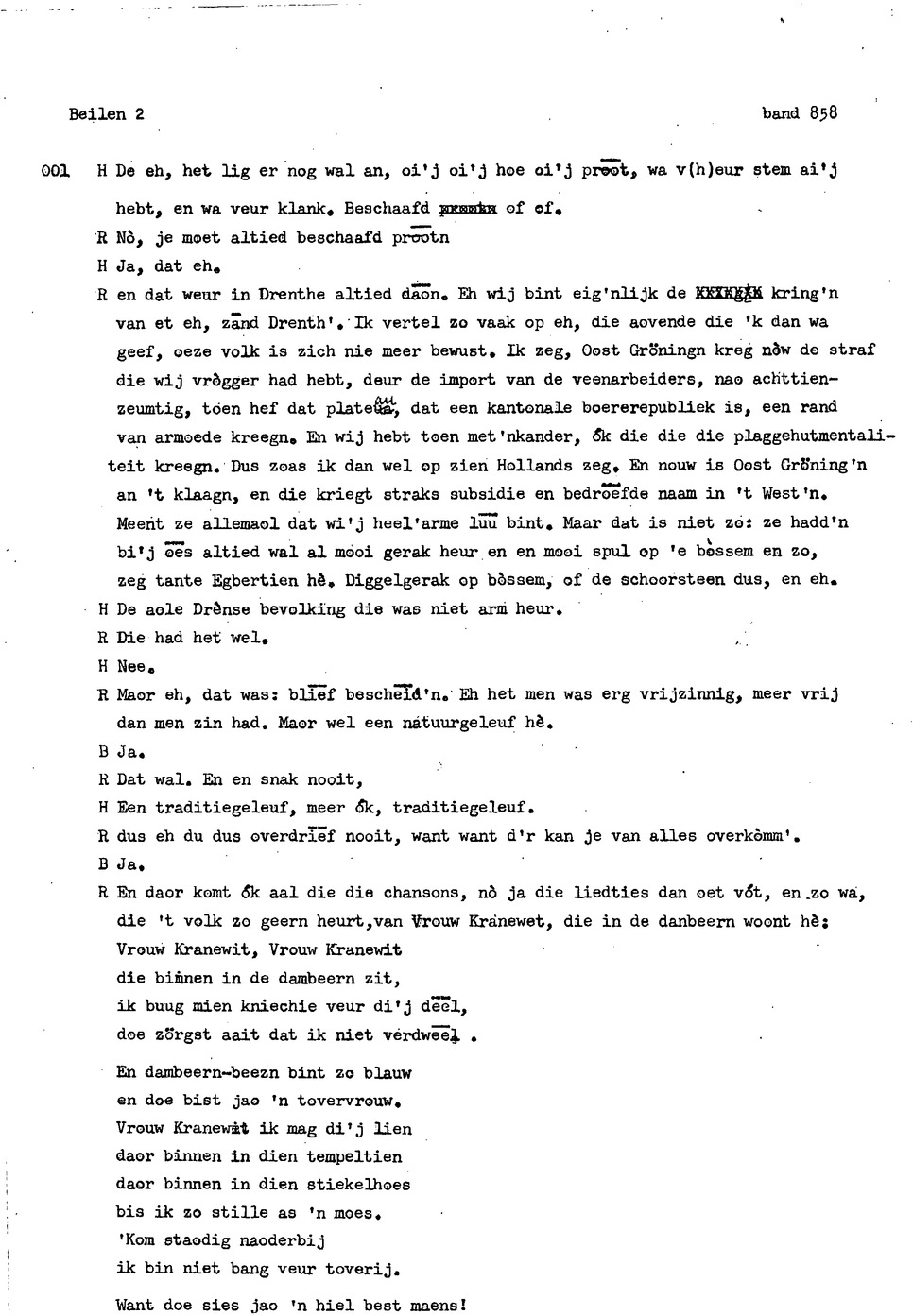 onderwerp: karakter van de Drenten. Beiler Stroom, armoede vroeger. gedicht over Vrouw Krane