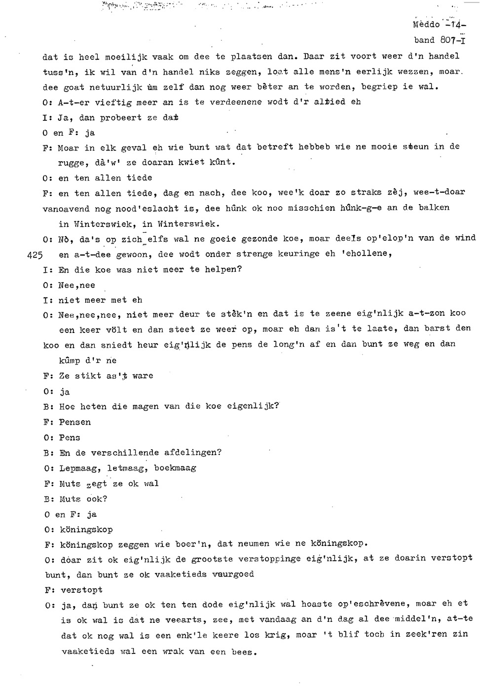 onderwerp: het weer, veeziekte, veeverzekering; vrouwenarbeid op boerderij, eten vroeger en nu