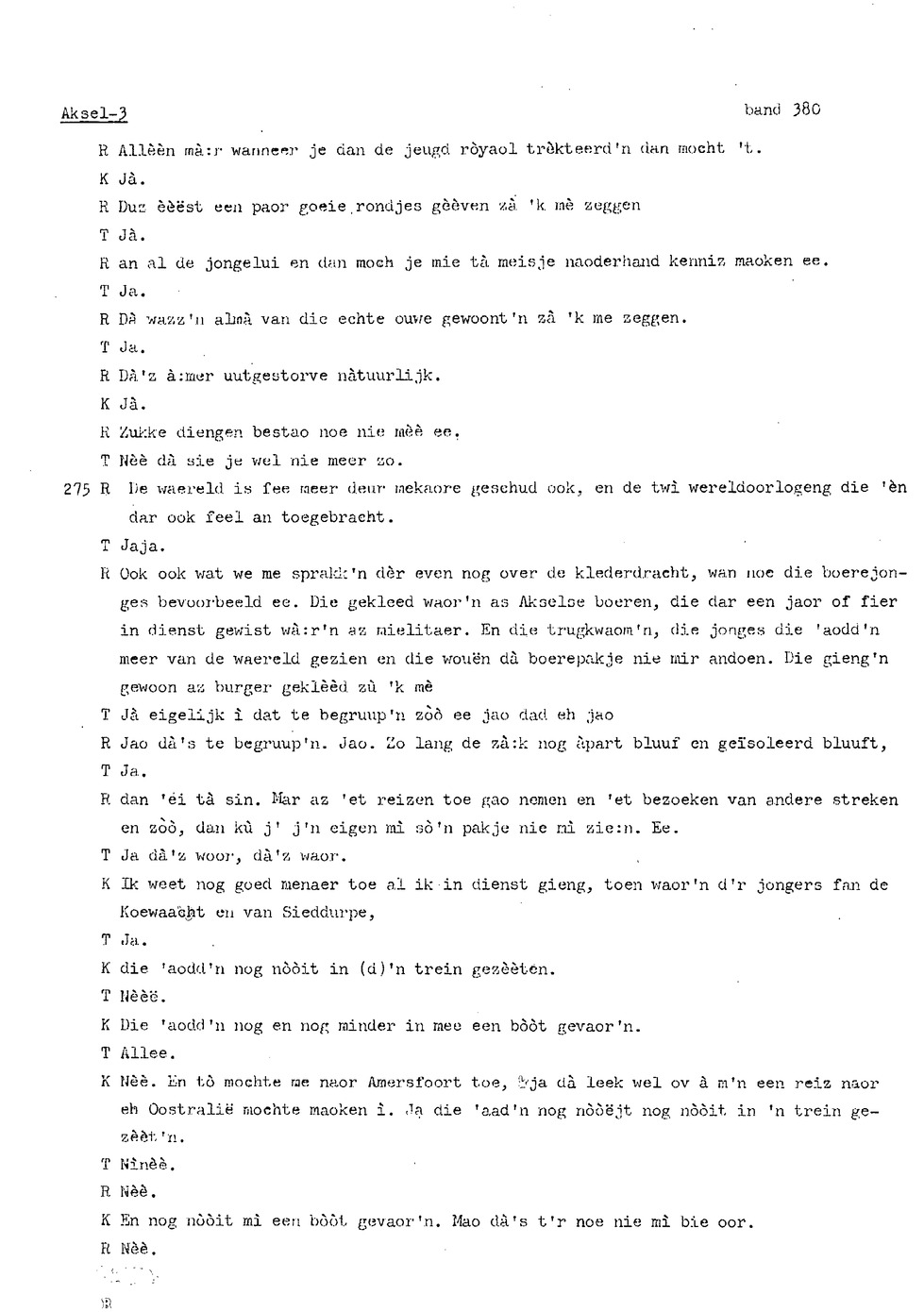 rivaliteit Axel en Terneuzen; klederdracht; slapen in bedstee; verenigingsleven Axel; mechanisatie paardenfokkerij