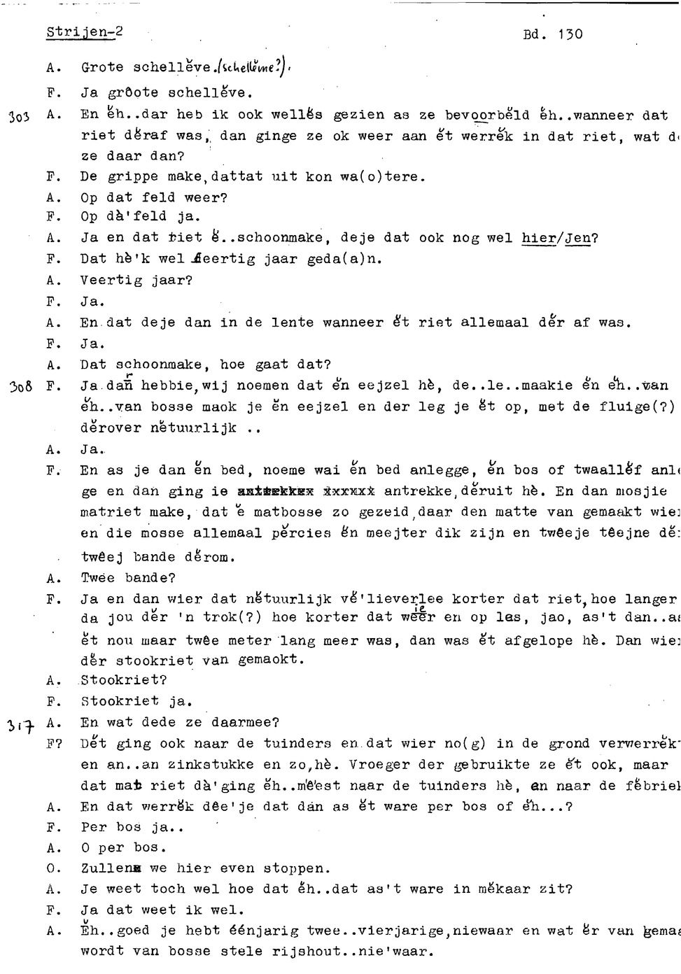 informanten: man, 1887, griendwerker vrouw, 1895, huisvrouw man, 1893, kruidenier man, 1892, landarbeider