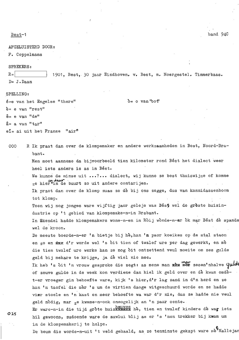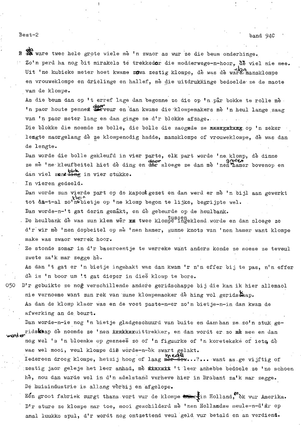 onderwerp: slacht; serie “merkwaardige of typische woorden” werk; dialect(en); veeteelt; lokale geschiedenis klompenmaker