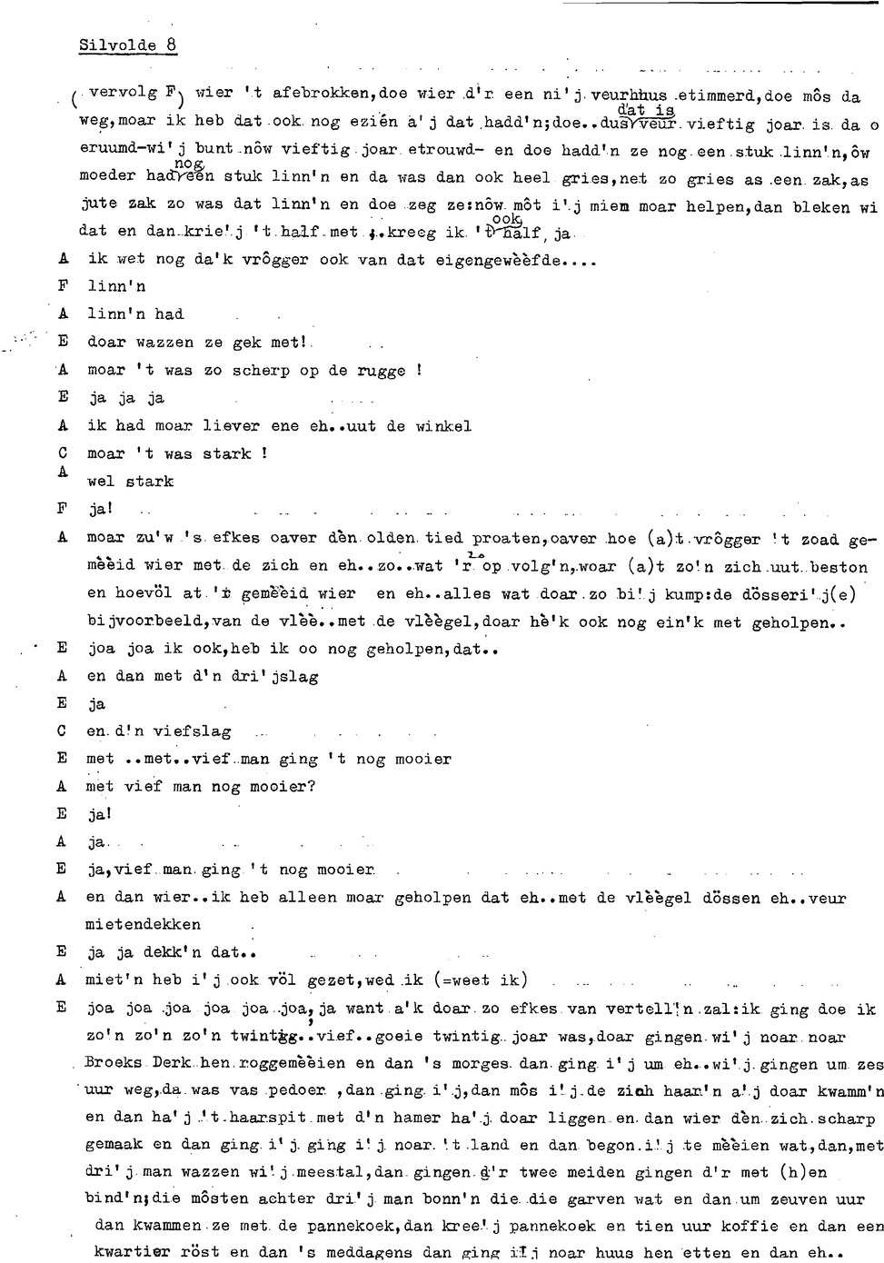 opname 8 (01:02:21) Voordrachten Sprekers uit: Dingsperlo, Dinxperlo Varsseveld, Varseveld? Suderwick (Duitsland) Winterswijk Silvolde Aalten Lintelo Vorden Westendorp IJzerlo Heelweg uit de "Achterhoek" Spoor 4 CD 1: