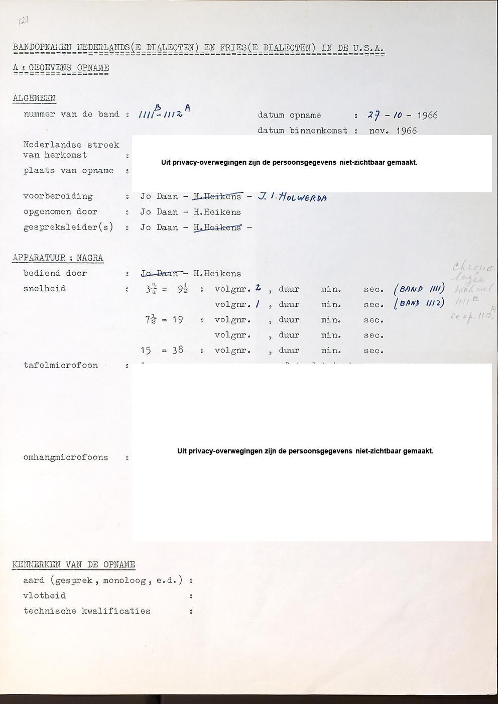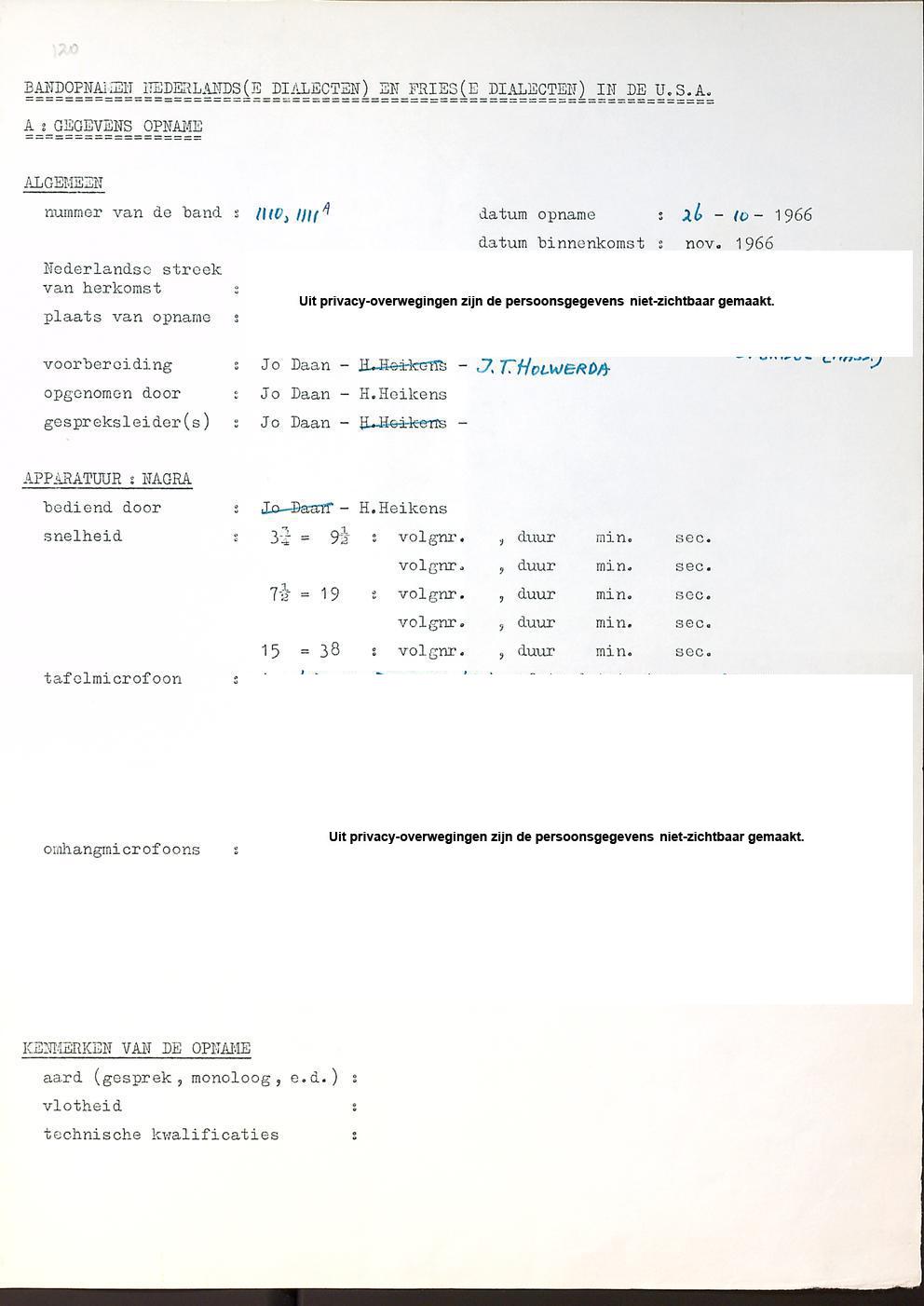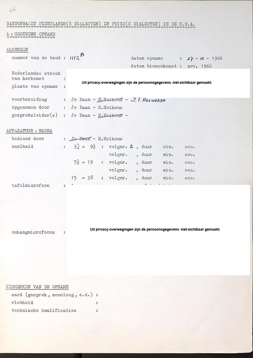 opnamegegevens:
